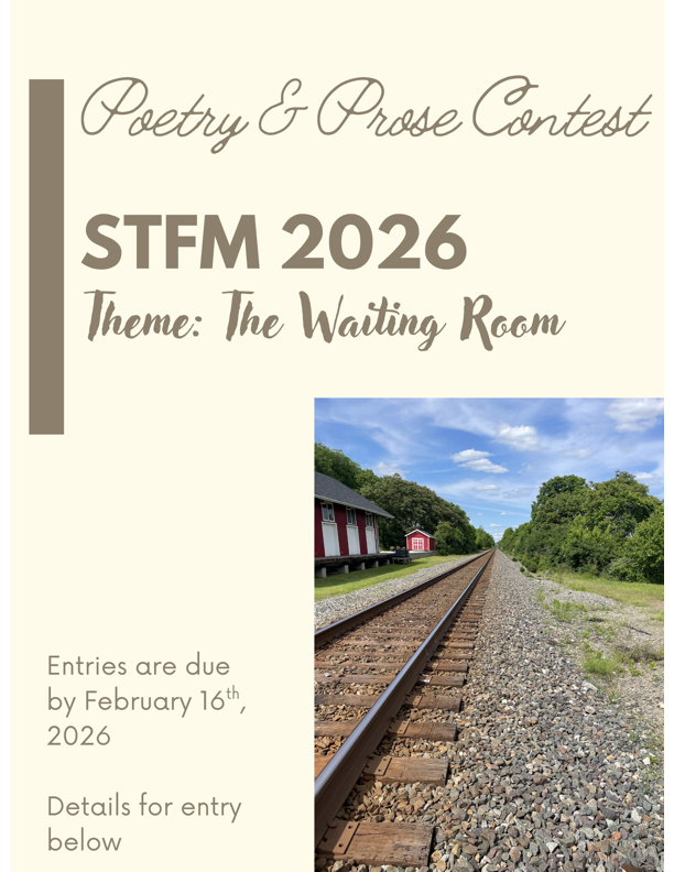 Entries are open for the 2026 Poetry & Prose Contest. The theme is "The Waiting Room". To be entered into the contest, complete and send this cover sheet and your entry as Word or PDF file to enitcher@stfm.org by February 16, 2026.