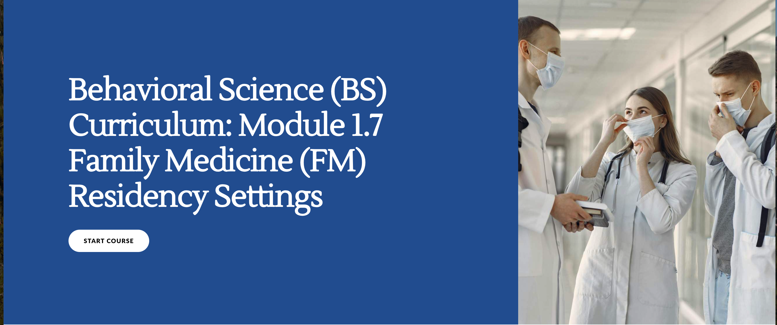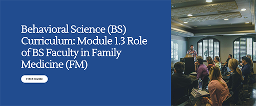 The Behavioral Science Curriculum is a comprehensive, interactive online curriculum for behavioral science (BS) faculty and behavioral health training in family medicine.