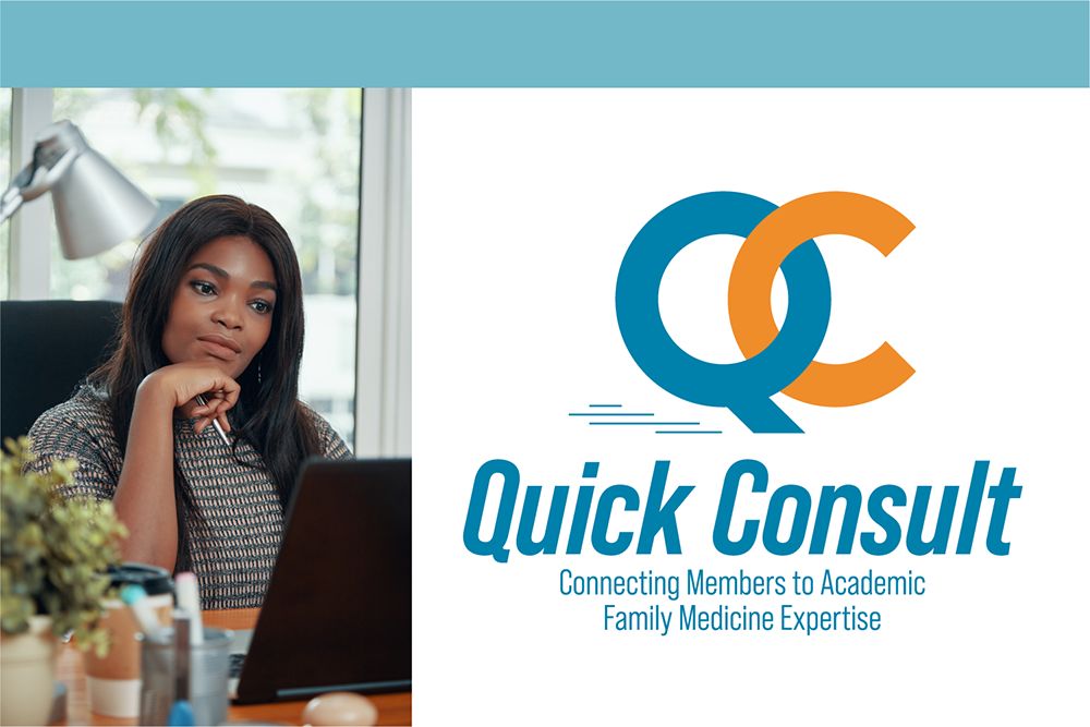 Crafted to cultivate collaborative learning and facilitate professional advancement, Quick Consult is an online mentoring platform that links members in search of guidance/advice with seasoned peers interested in sharing their wisdom and expertise.Whether navigating career shifts, refining new skills, or in pursuit of faculty development insights, Quick Consult empowers users to thrive and excel within a supportive and cooperative environment.Quick Consult is available for free to members of the following family medicine organizations: